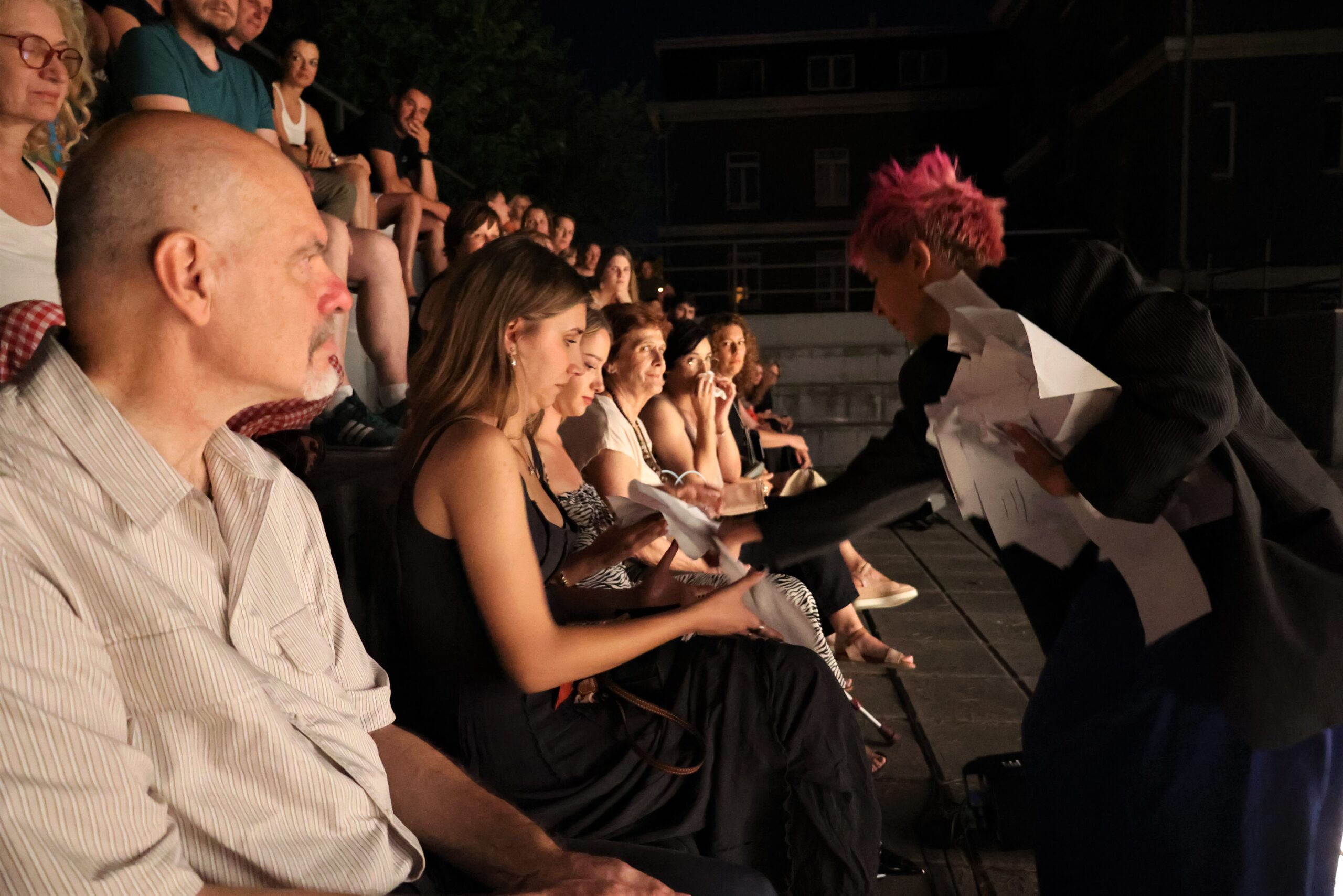 U subotu 21. srpnja prva je izvedena predstava Tonke Bušić „Nikad se nije kaja ko je muča“ koja je na livadi iznad Akademije gledatelje uronila u obiteljsku svakodnevicu, pažljivo secirajući dinamiku između oca i sina. Uz autoricu, u predstavi su glumili Tea Sekelj i Mateo Zvono. Istoga dana je „u bazenu“ Akademije u kasnovečernjim satima izvedena predstava Mare Šimić „S figom u džepu“ gdje su gledatelji promatrali kako se mijenjaju životi triju prijatelja, prije, tijekom i poslije Domovinskog rata, ulazeći u ratnu traumu, kako kroz teatar, tako i kroz dokumentarističke fragmente. U njoj su nastupili Ernest Belošević, Hrvoje Greg Šimić i Mateo Zvono.